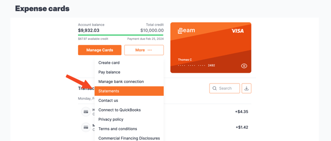 All Beam card expenses are automatically synced under a single chart of accounts account in QBO called Beam Card. Details about which card was used will be synced in the expense as a memo.